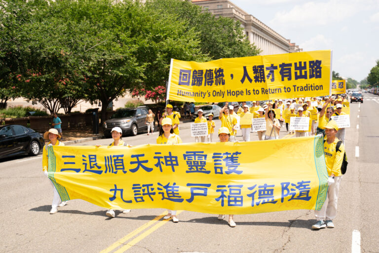 杨先生也满怀喜悦地说:“恭喜你!你记住啊,常念九字真言:‘法轮大法好,真善忍好’,天赐幸福平安!天安门自焚也是假的,好,再见。”