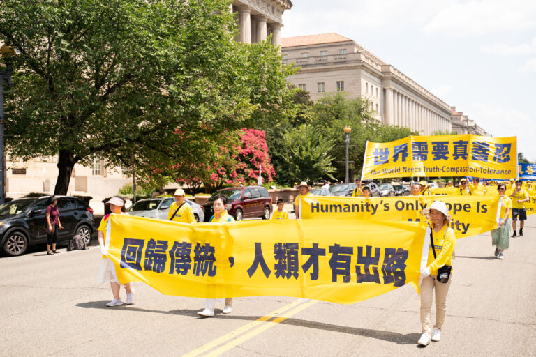 2021年7月16日,美东部分法轮功学员在华盛顿DC游行。(戴兵/全球.退:!服务中心)