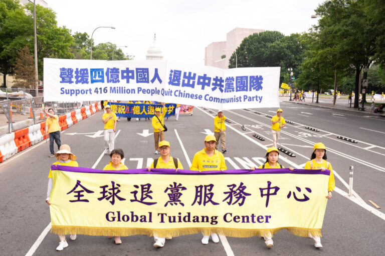 2023年7月20日,美国首都华盛顿DC举行大游行,抗议中共过去24年来对法轮功团体的残酷迫害,声援4.16亿人声明退出中共党团队组织。(戴兵/全球.退:!服务中心)