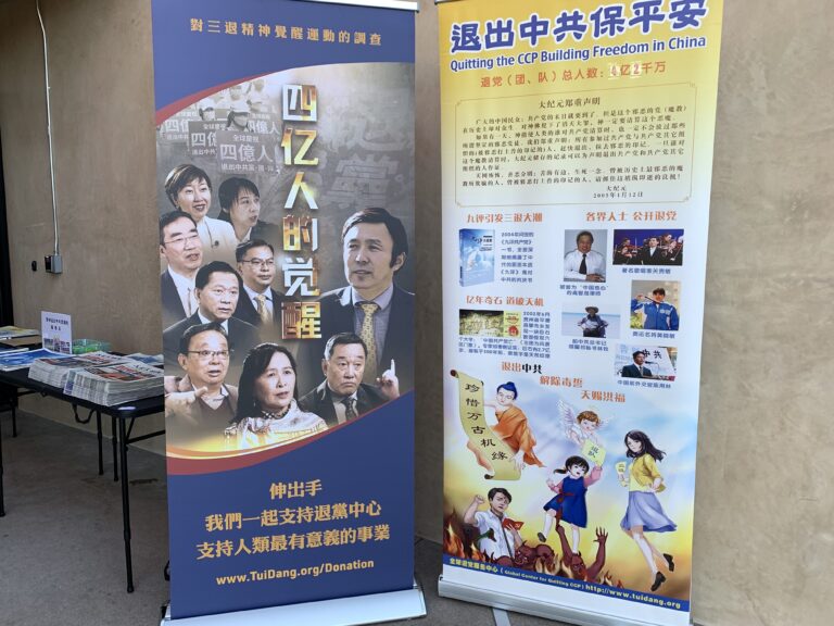 2023年11月11日,洛杉矶退!党!中心负责人李海伦(Helen Lee)介绍,纪录片《四亿人的觉醒》引发更多人的共鸣,很多民众当场声明“三:退.”。(新!唐!人:电视台)