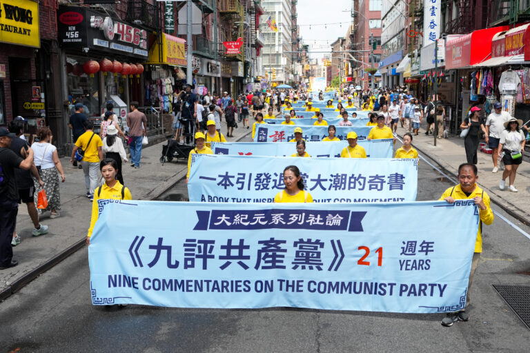 2025年7月20日纽约部分法轮功学员曼哈顿唐人街大游行。(戴兵/全球.退:!服务中心)