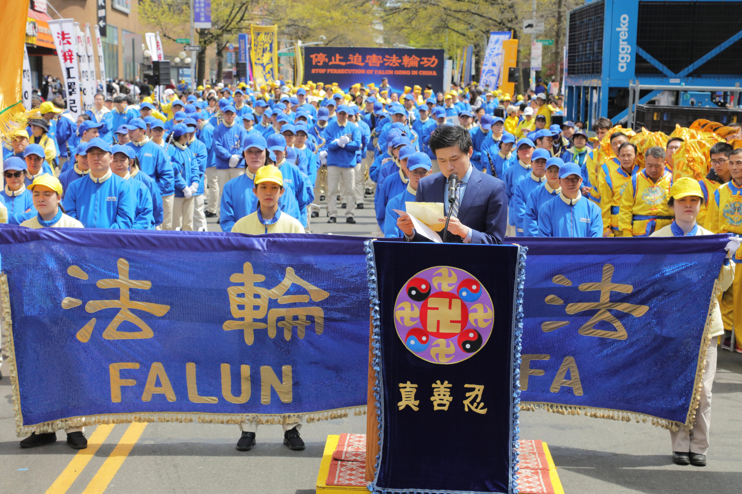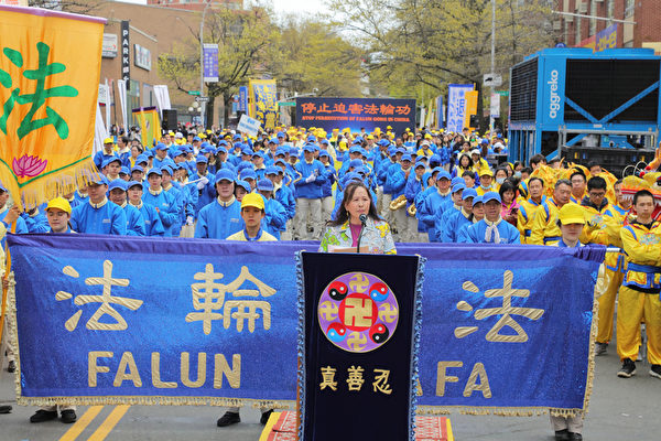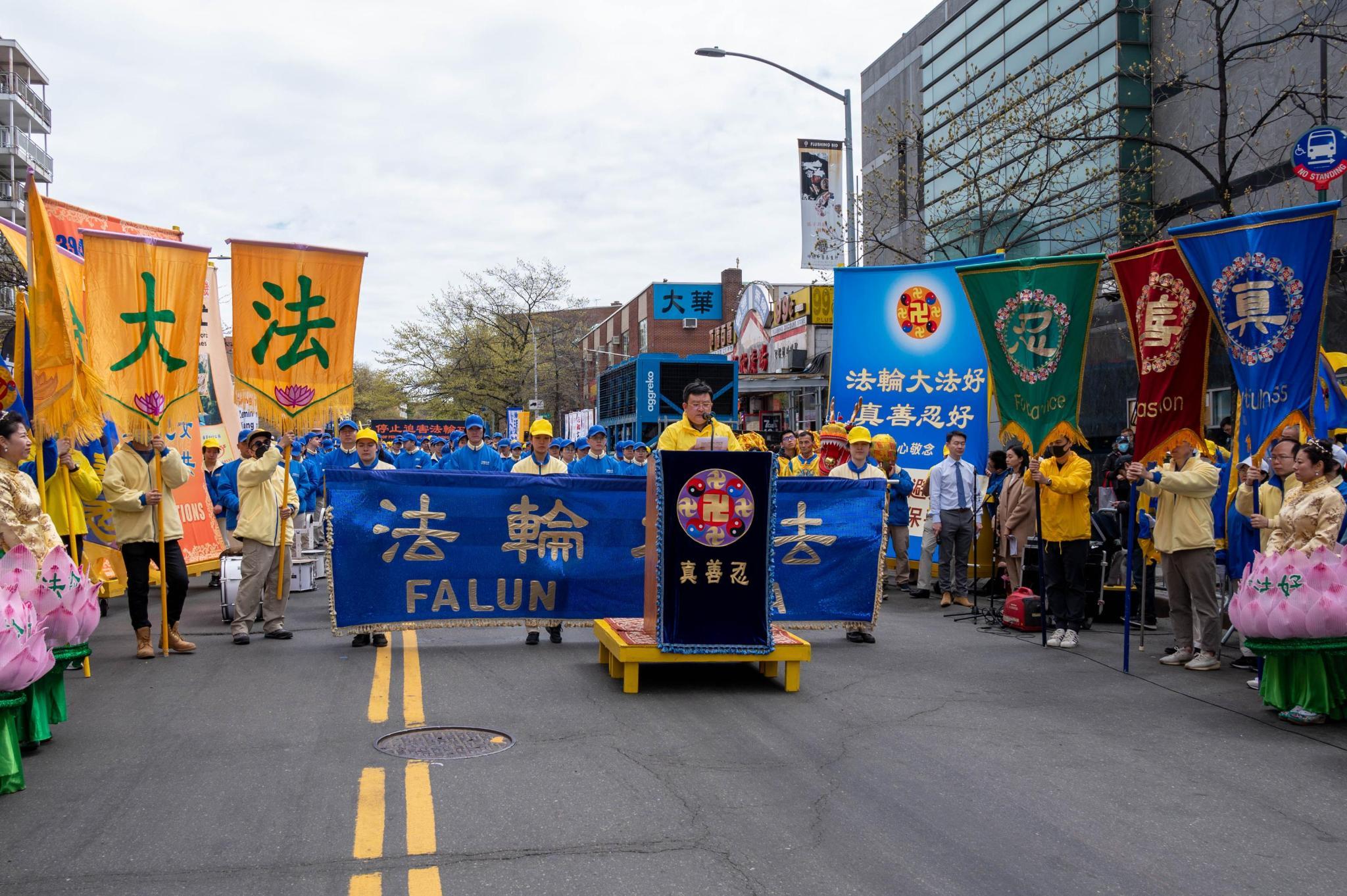 4月23日春光明媚,逾两千名纽约法轮功学员在法拉盛举行盛大游行和集会,纪念1999年4月25日万名中国法轮功学员和平上访23周年,庆祝3.94亿中国人退出中共党、团、队。 游行结束后,法轮功学员在法拉盛中心区的图书馆旁,举行了声势浩大的集会,当年曾参与1999年4月25日和平上访的法轮功学员、法拉盛