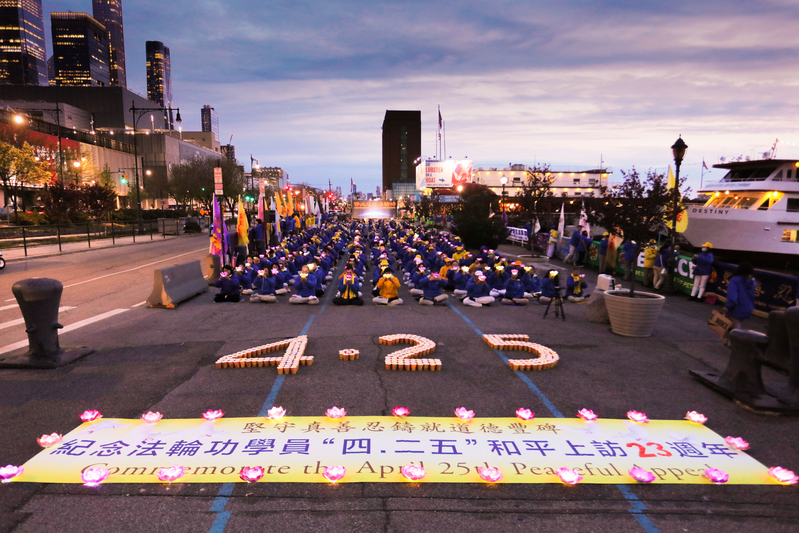 4月23日傍晚,纽约地区部分法轮功学员数百人在中共驻纽约总领馆前集会,纪念1999年法轮功学员北京大上访23周年,揭露中共反人类罪行。学员们手举蜡烛,悼念在过去23年中被中共迫害离世的法轮功学员。 参加集会的学员中有当年四·二五上访的亲历者,也有没有去北京却立即感受到巨大压力的初学者;还有很多没有参