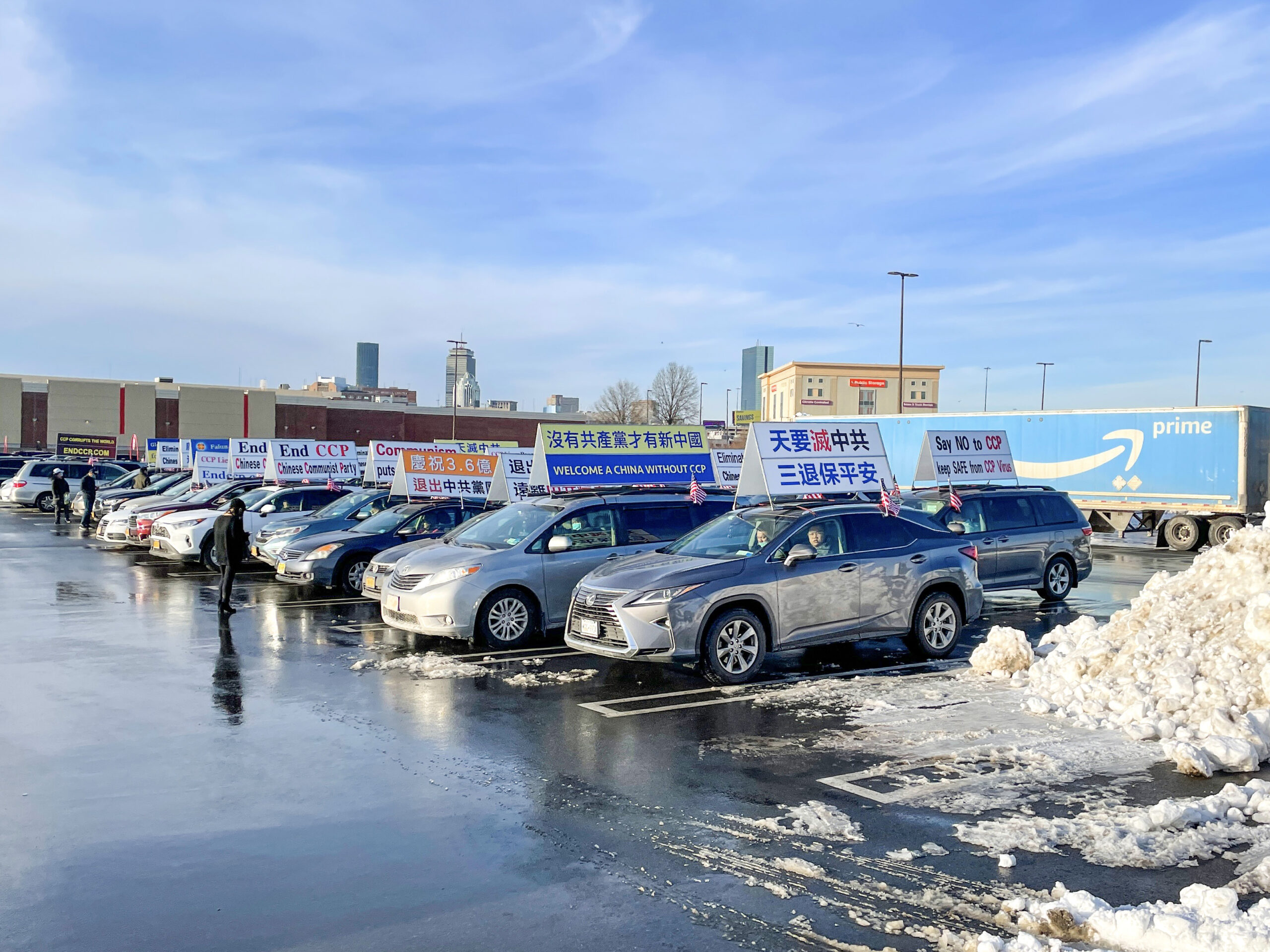 席卷整个美东的这场暴雪,创下了波士顿史上最高积雪记录,而纽约降雪量超过了去年整个冬天的总和。美东时间12月19日早上六点,在这个白雪皑皑的寒冷清晨,40多辆车及几十名征签义工组成的纽约“解体中共恶魔”真相车队再次出征,驱车三四个小时,通过93号州际公路抵达马萨诸塞州的首府和最大城市波士顿。 纽约“打