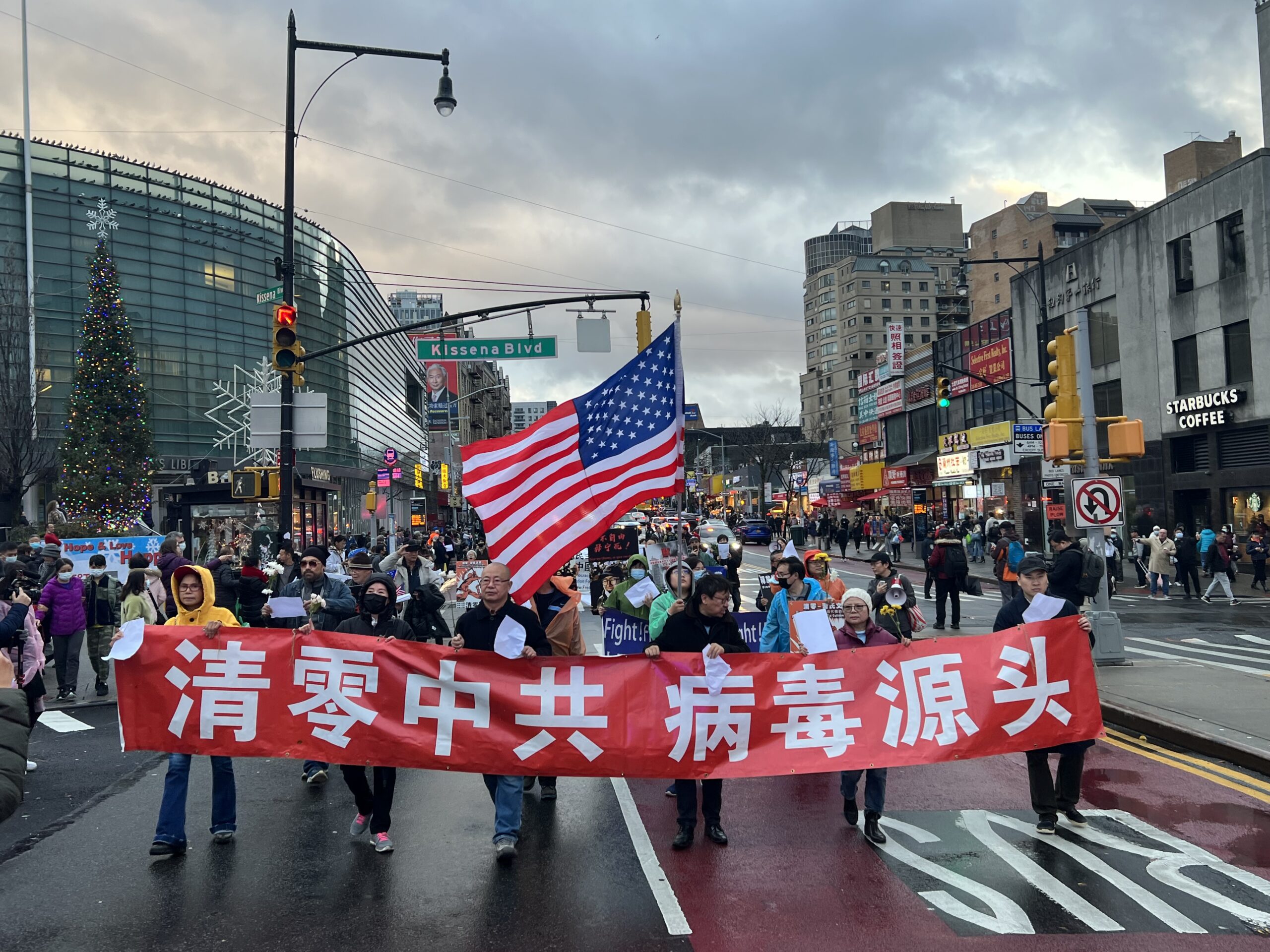12月3日(周六),纽约华人在法拉盛举行游行,声援大陆的白纸革命。同日,纽约“打倒中共恶魔”真相车队也在法拉盛冒雨举行了一天的车游,并点燃爆竹烟花庆祝江泽民之死。
