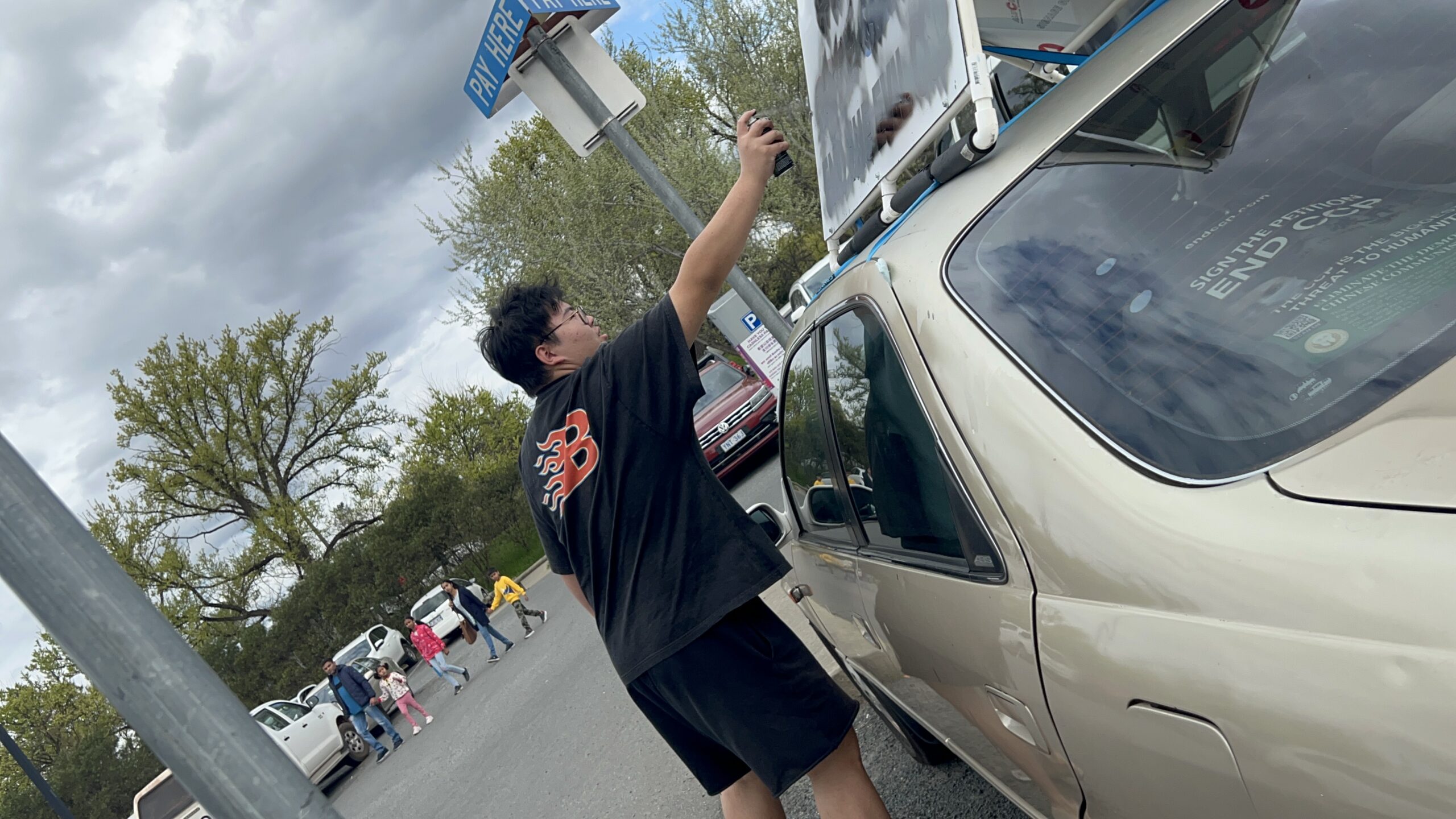 运送展板来回9900英里日夜兼程 穿越高山、森林、湖泊和苔原 极具挑战 十多名End CCP的义工经过长途跋涉,8月21日在美国最西北的阿拉斯加州的冰川上,展示了“打倒中共恶魔”的横幅,而且车顶悬挂End CCP的展板,在阿拉斯加进行了车游,最艰难的一环是把13块沉重的展板运到远离美国本土、偏远的阿