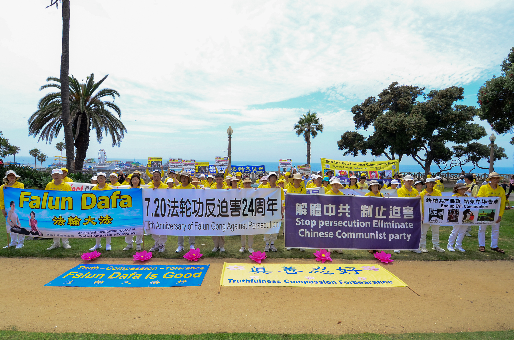 今年的7月20日,是法轮功反迫害24周年。7月23日(周日),洛杉矶法轮功学员来到世界著名的旅游胜地圣莫妮卡海滩(Santa Monica Beach),举办反迫害活动,他们展开横幅,揭露中共活摘法轮功学员器官,等一系列反人类罪恶;他们集体大炼功,展现法轮大法的祥和美好;呼吁结束中共(End CCP