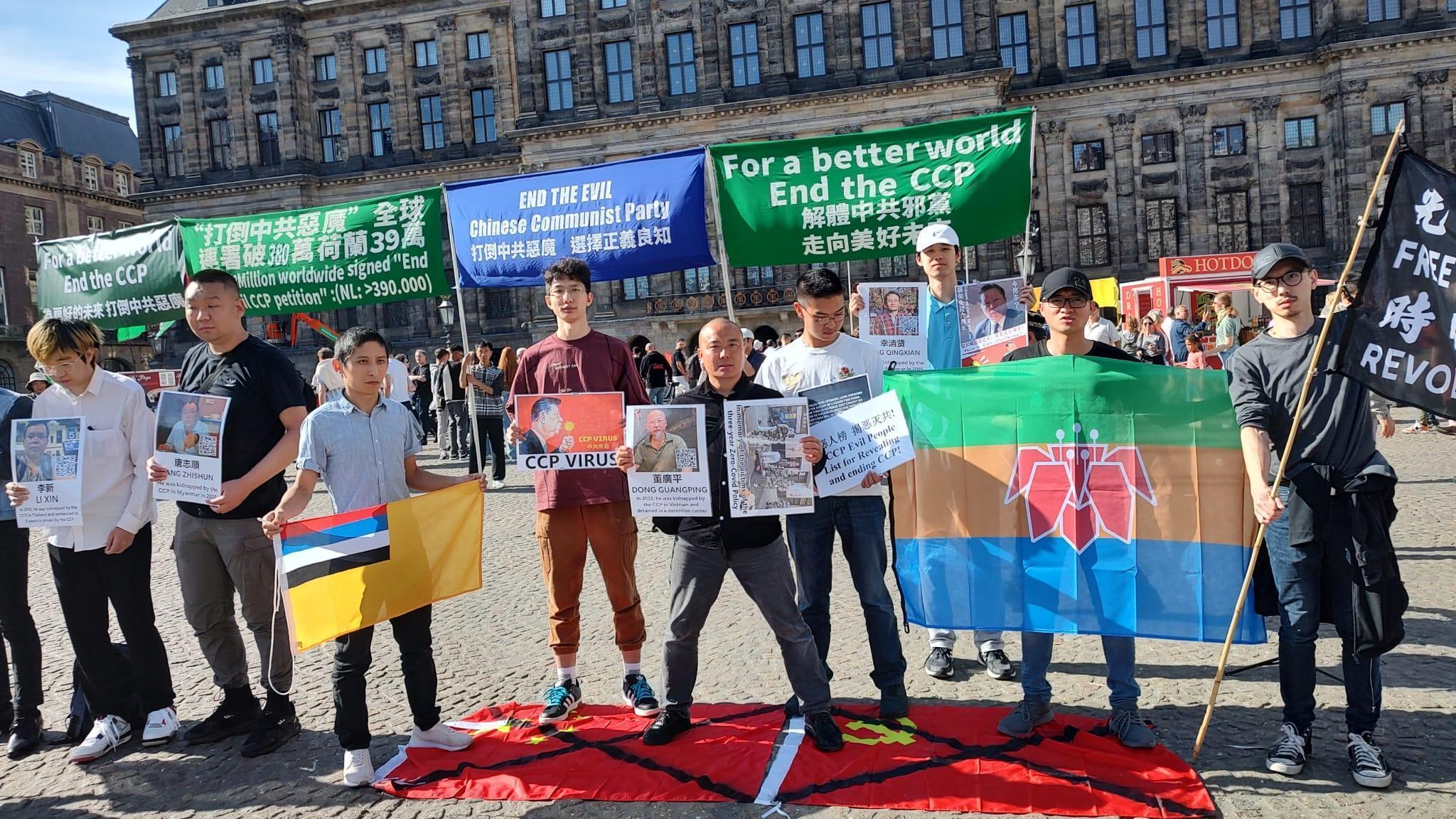 10月1日这天是中共的国庆日。在荷兰首都阿姆斯特丹水坝广场,聚集了来自中国各族裔群体。他们搭起展台,拉出横幅,举行了大型集会,抗议中共暴政,喊出了打倒中共恶魔的口号。
