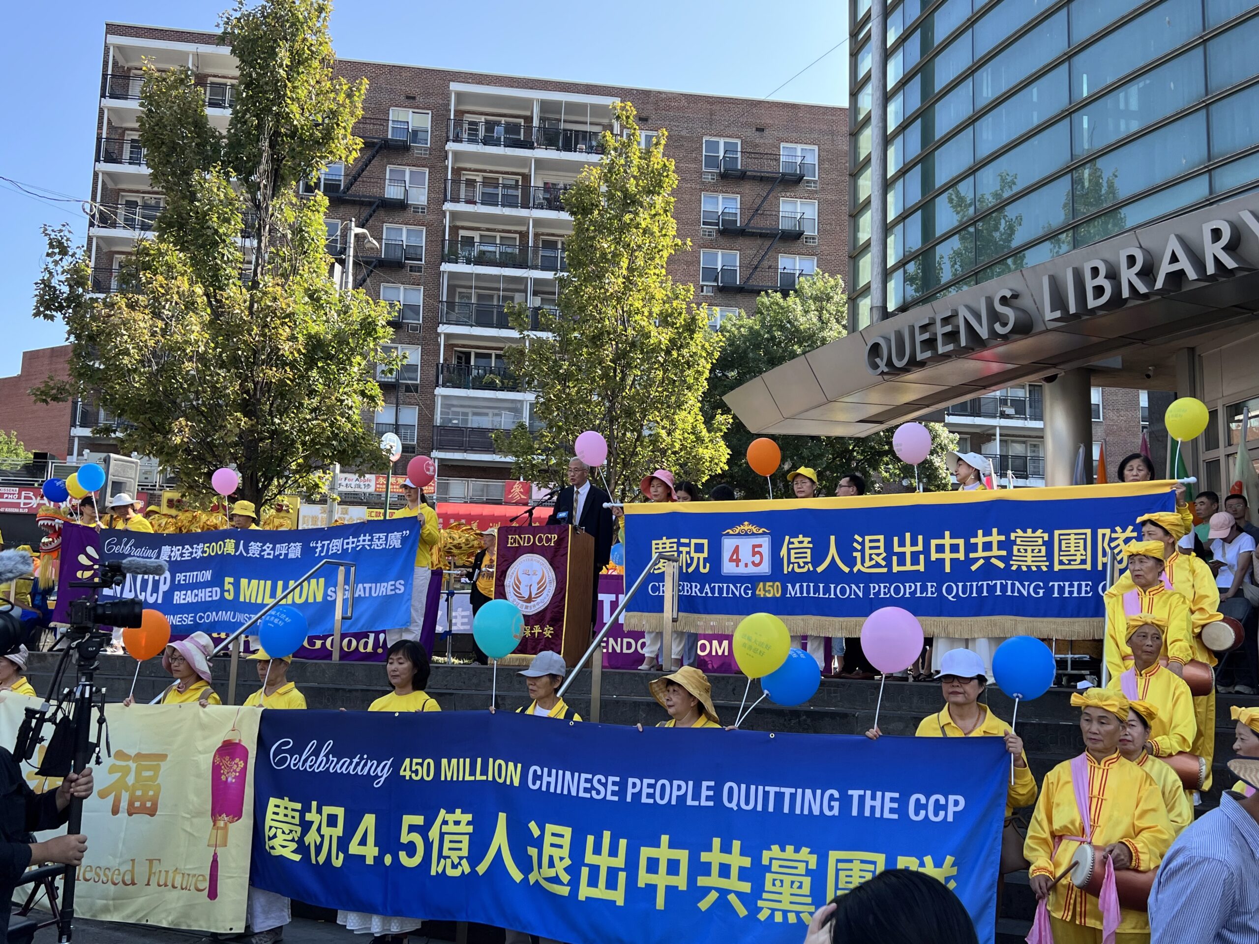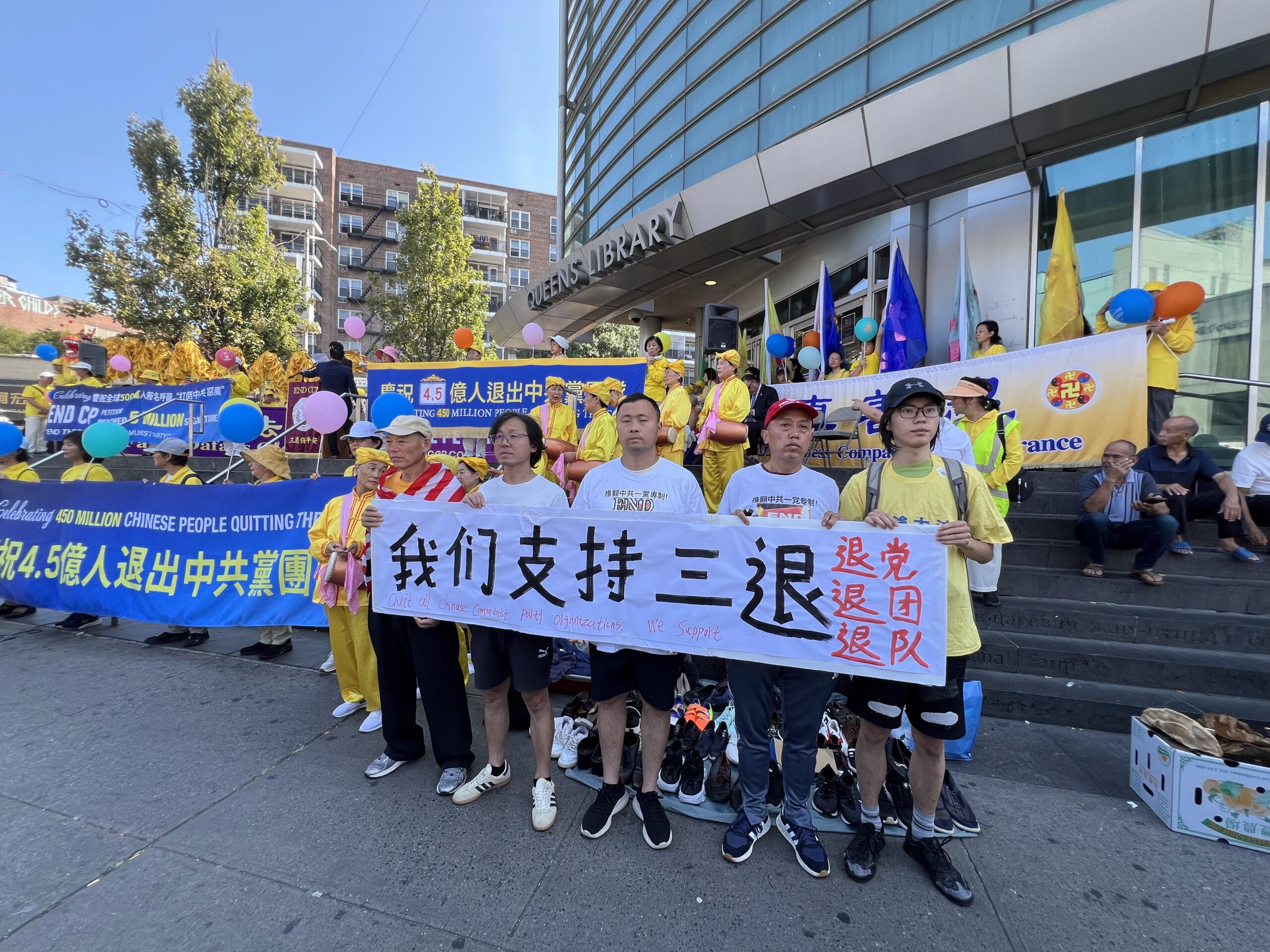 8月10日,纽约法拉盛锣鼓声声、金龙起舞、祥狮献瑞,全球退出中共服务中心(Global Service Center for Quitting CCP Center)举行庆祝活动和集会,声势浩大、震撼人心,庆祝退出中共党团队的人数突破4.5亿人暨“打倒中共恶魔”(End CCP)人数即将突破500万