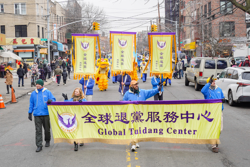 2月26日(周日),来自大纽约地区的部分法轮大法学员,在纽约布鲁伦八大道华人社区举行盛大游行,声援近四亿一千万勇士三:退.(退出中共党、团、队), 声援“打倒中共恶魔”(EndCCP)的征签逾320万。 当天上千中西族裔法轮功学员在纽约华人社区布鲁伦繁华的商业街八大道游行,向民众送去法轮大法的福音和美好