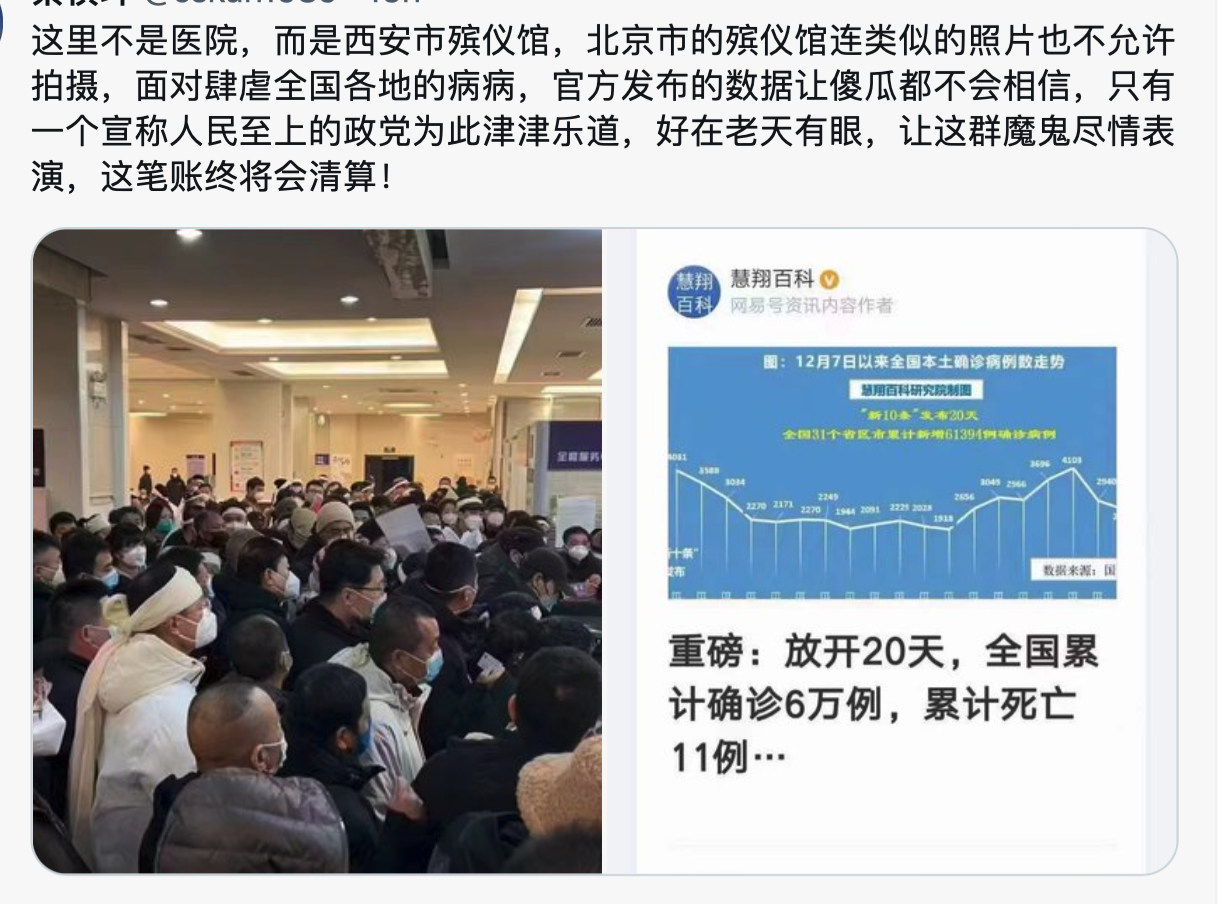 最近,疫情再次在中国大爆发,已感染数亿人,死者甚众。它实际上是2020年大瘟疫的继续。