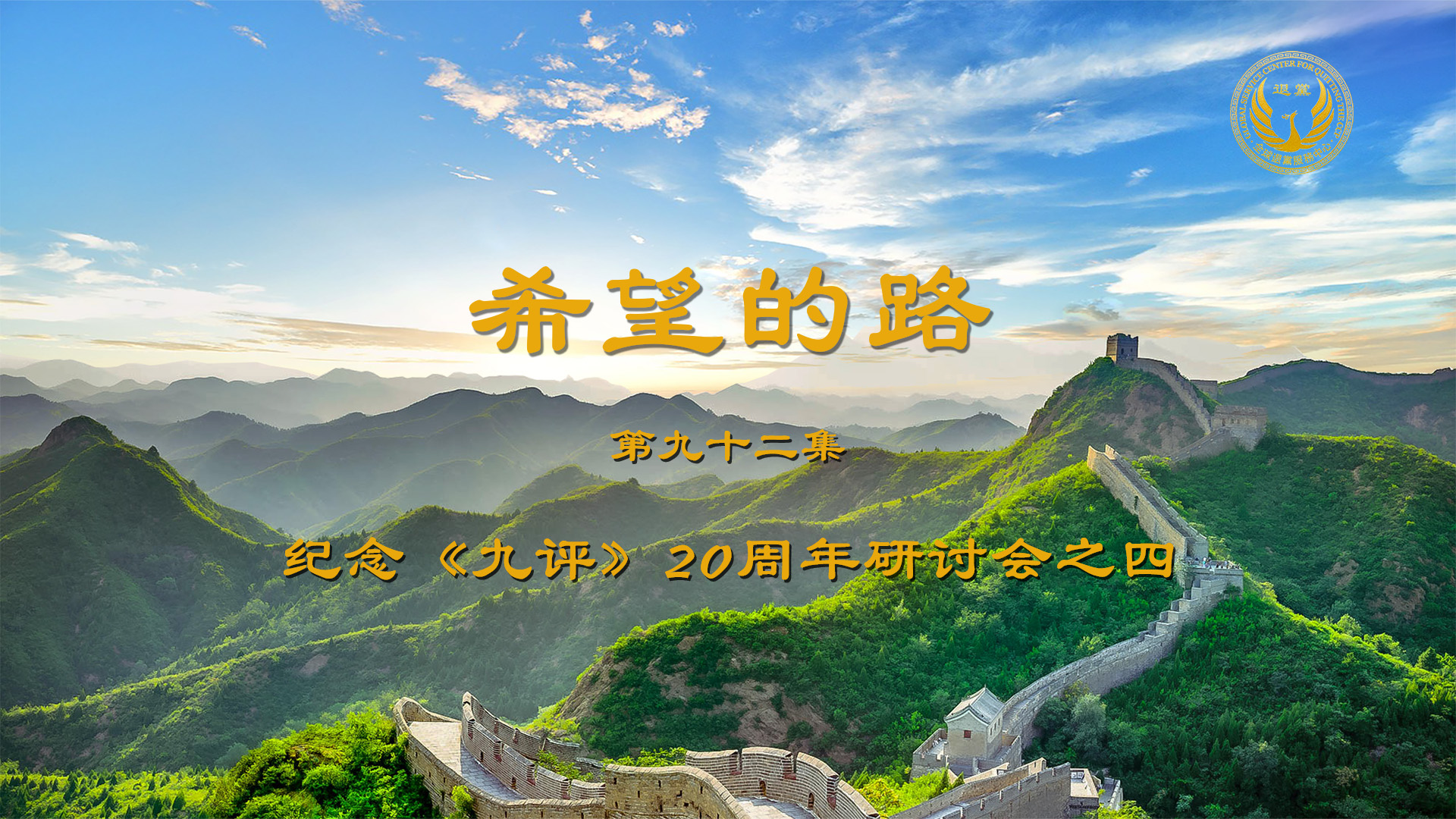 观众朋友们,大家好,欢迎收看《希望的路》。大.纪.元;系列社论《·九·评*共产党》至今已经发表20周年,这本巨著深刻地总结了中国共产党的历史及其本质,给为祸人间一个多世纪的国际共产主义运动,特别是中国共产党敲响了丧钟。《·九·评*》也引发了全球退出中共党、团、队的三:退.大潮。至今,三:退.人数累计超过4.4亿人。 在纽约法